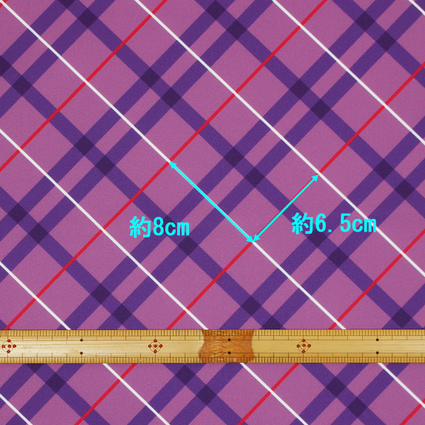 C0631 赤紫ベース白×赤ピンク斜めチェック柄生地