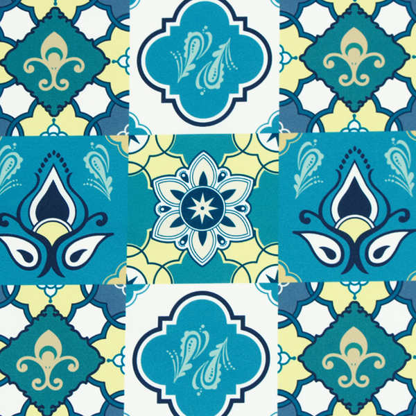 C0685 緑ベースモロッカンタイル柄生地