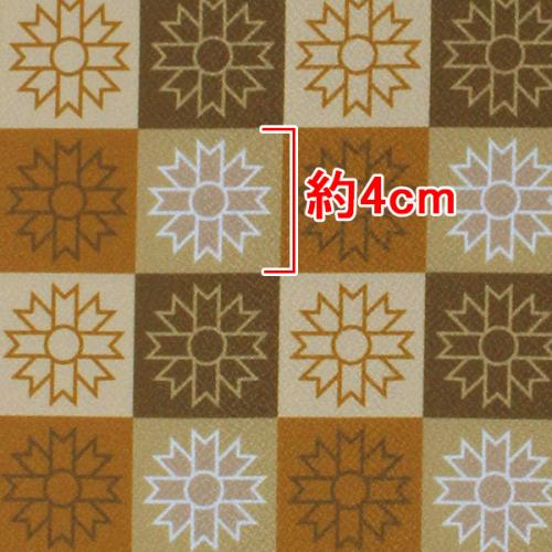 C0168 ブラウン 花柄市松模様生地
