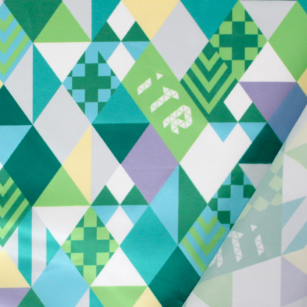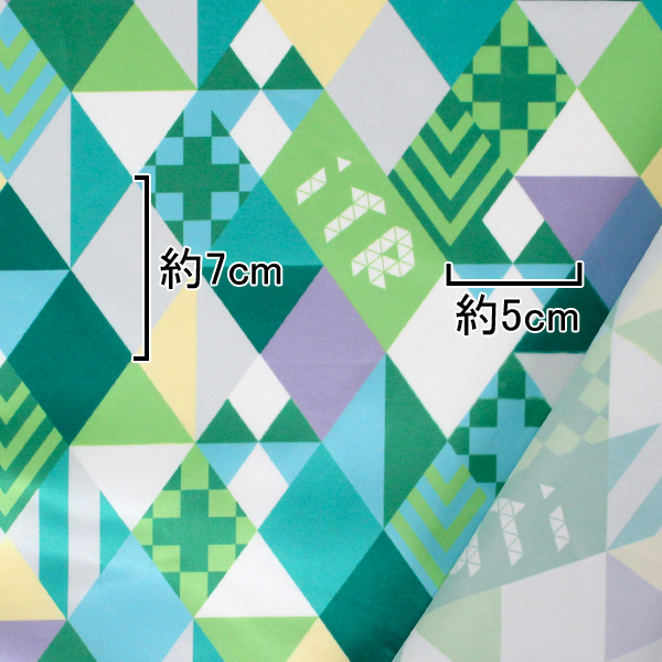 C0242 緑ベースカラフル 幾何学ダイヤ柄生地