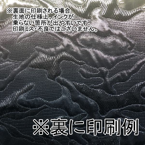 裏面に印刷することも可能ですが、生地の仕様上シボが入っており、インクが乗りきらずムラのような箇所が出ます。