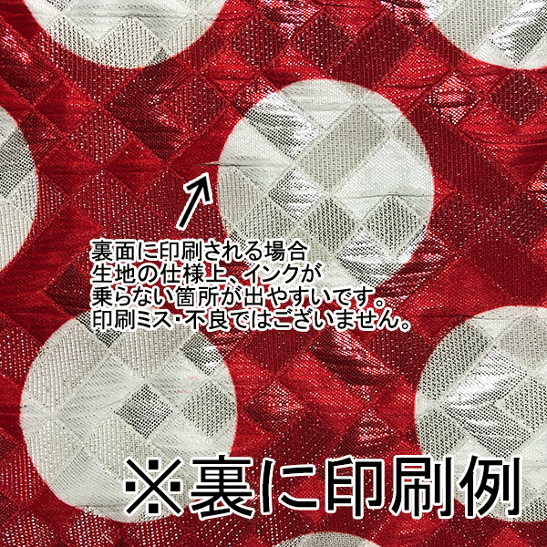 裏面に印刷することも可能ですが、生地の仕様上シボが入っており、インクが乗りきらずムラのような箇所が出ます。