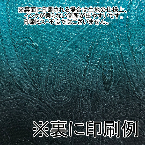 裏面に印刷することも可能ですが、生地の仕様上シボが入っており、インクが乗りきらずムラのような箇所が出ます。