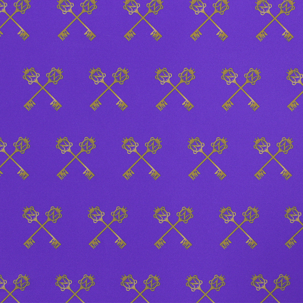 【C0286 紫ベース 鍵モチーフ柄生地】