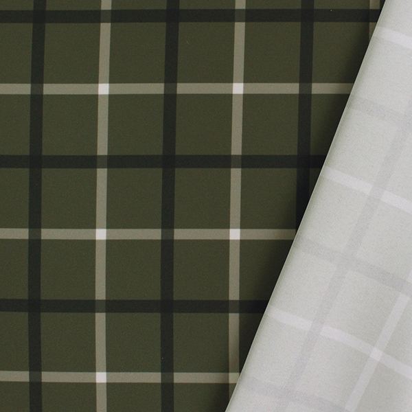 C0309 カーキグレー チェック柄生地