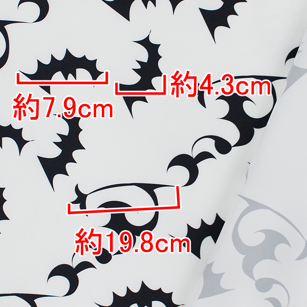 C0367 白×黒 コウモリ柄生地
