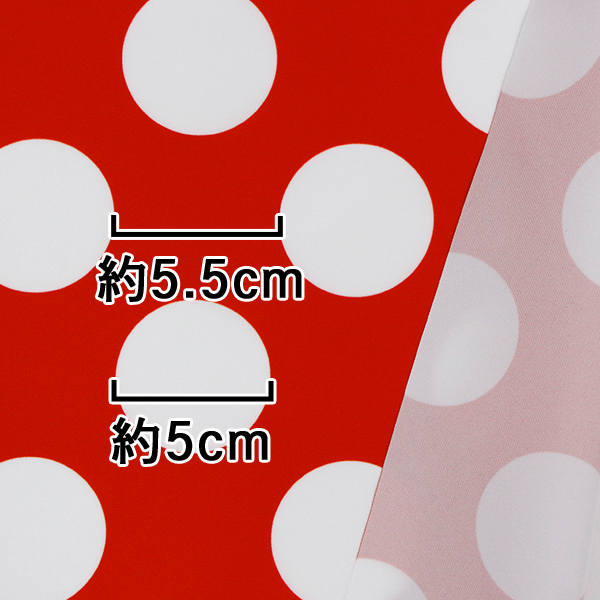 「C0219 赤×白 水玉柄生地」の水玉の間隔を縦横ともに5.5cmに統一したバージョンです。