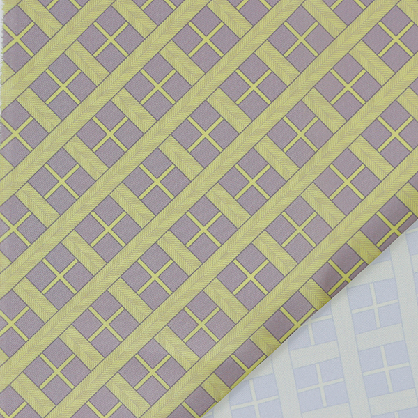 C0463 黄色×グレー 格子柄生地