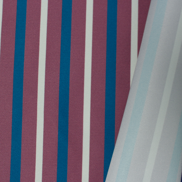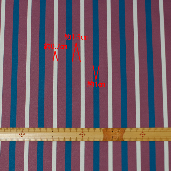 C0524 赤ベース青×クリーム色ストライプ柄生地