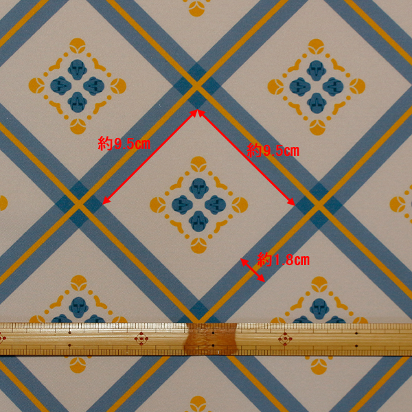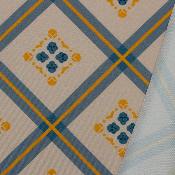 C0529 ベージュべース青×黄色斜めチェック柄生地