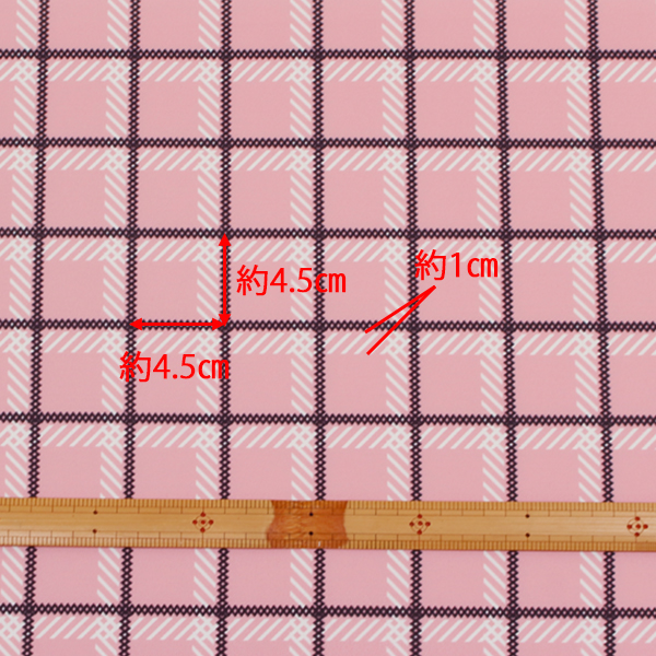 C0542 ピンクベース黒×白チェック柄生地