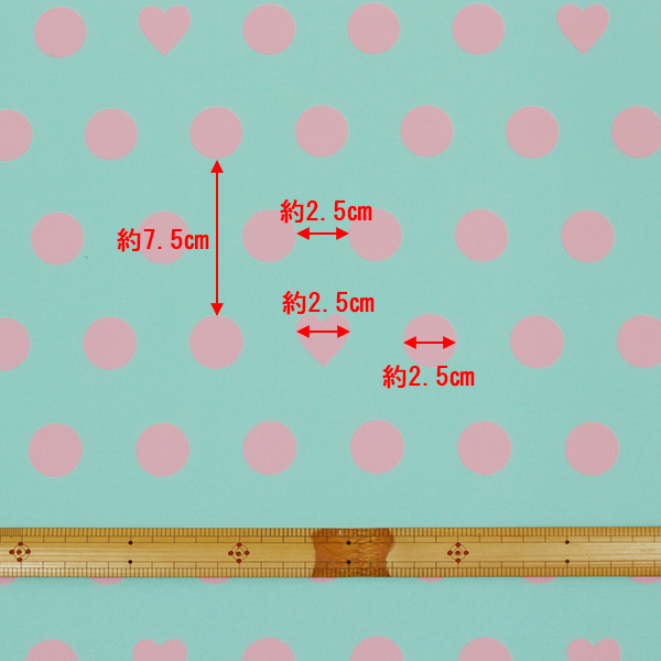 C0567 ミントベースピンクハート水玉柄生地