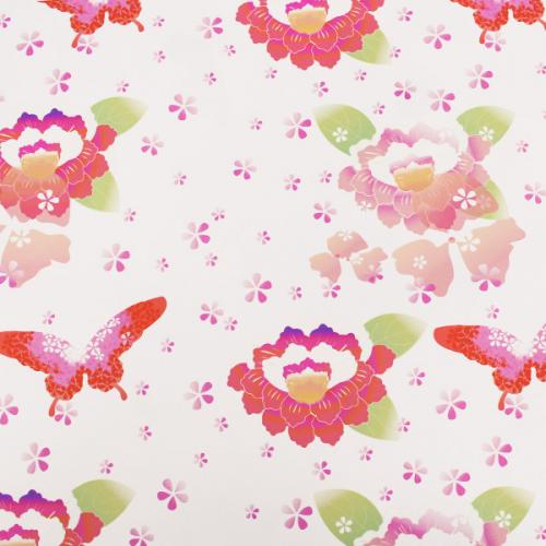 赤とピンクの蝶々と花柄の和風プリント生地です。