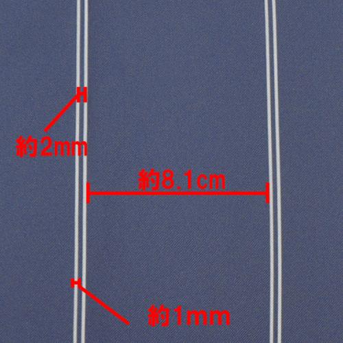 グレーがかった紺色をベースにしたストライプ柄生地です。細いラインの色は淡いグレーにいたしました。