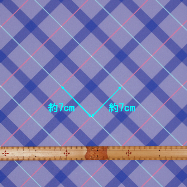 C0625 紫ベースピンク×水色斜めチェック柄生地