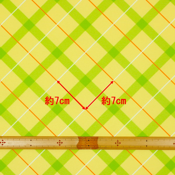 C0626 黄色ベース白×オレンジ斜めチェック柄生地