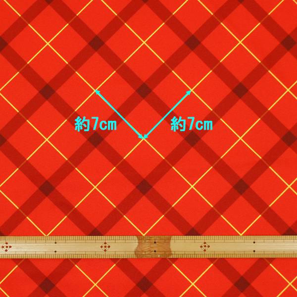 C0627 赤ベース赤×黄色斜めチェック柄生地