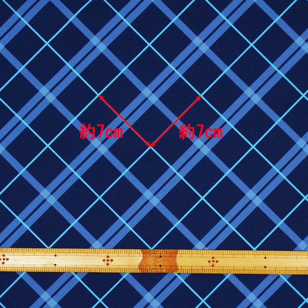 C0628 紺色ベース水色斜めチェック柄生地