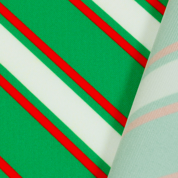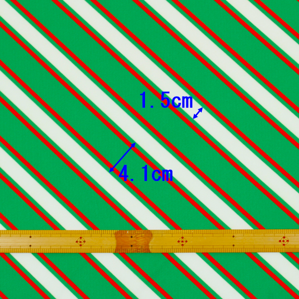 C0641 緑ベース赤×白斜めストライプ柄生地