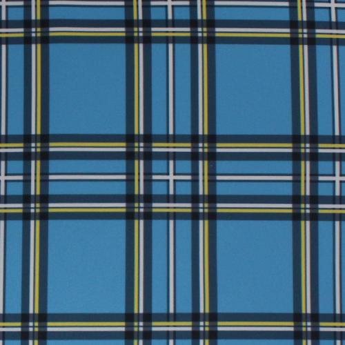 水色がベースのチェック柄生地です。