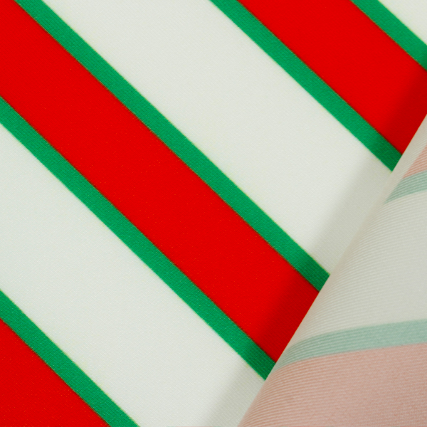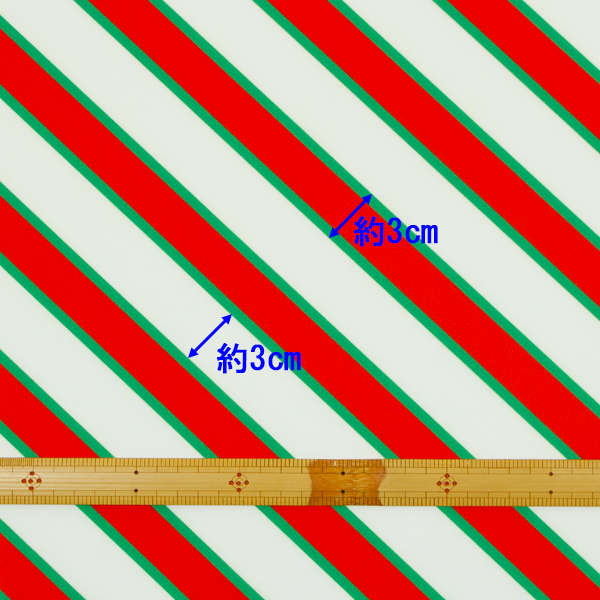 C0644 白ベース赤×緑斜めストライプ柄生地