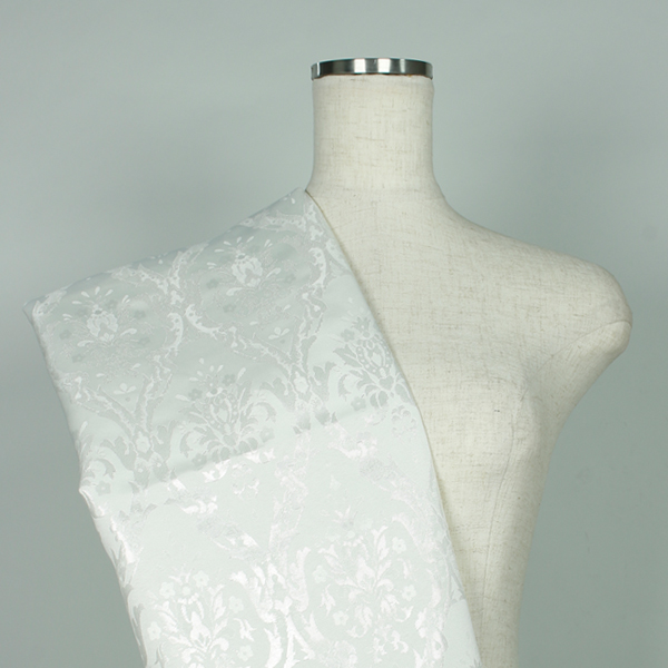上品で強い光沢を放つ特徴のアラベスク柄のジャガード素材です。