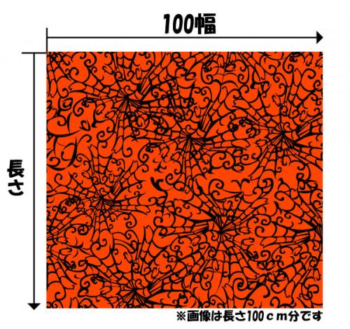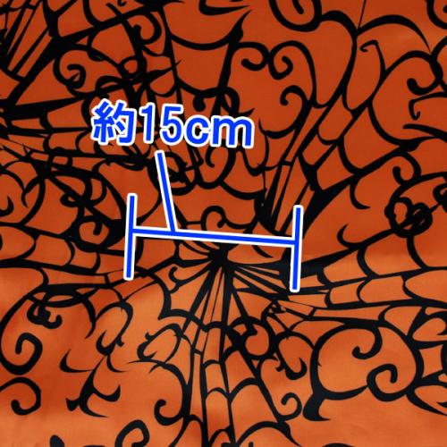 オレンジ色がベースの大きなくもの巣柄生地です。